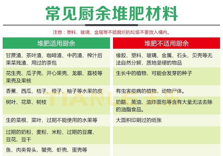 注意:塑料、玻璃、金屬等不能腐爛的垃圾不要放入桶內。