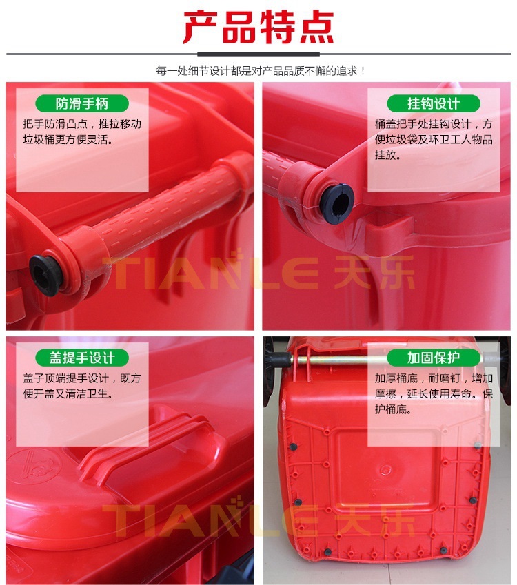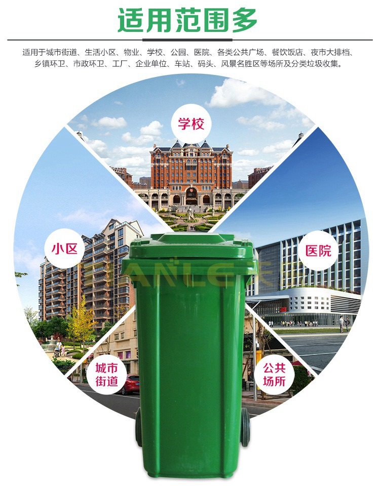 【適用場所】城市街道、生活小區(qū)、物業(yè)、學(xué)校、公園、醫(yī)院、各類公共廣場、餐飲飯店、夜市大排檔、鄉(xiāng)鎮(zhèn)環(huán)衛(wèi)、市政環(huán)衛(wèi)、工廠、企業(yè)單位、花園、車站、碼頭、風(fēng)景名勝區(qū)等場所及分類垃圾收集。