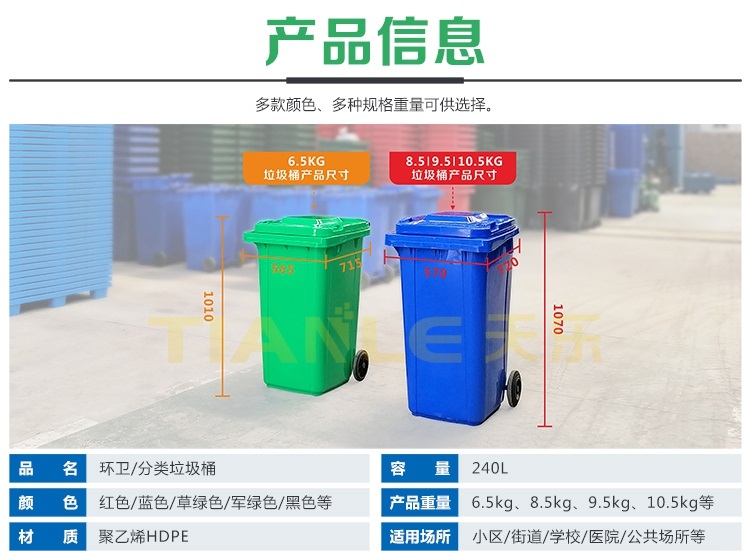 5、適用于學(xué)校、小區(qū)、醫(yī)院、城市街道、公共場所等場所及垃圾分類收集,多種顏色可選擇。