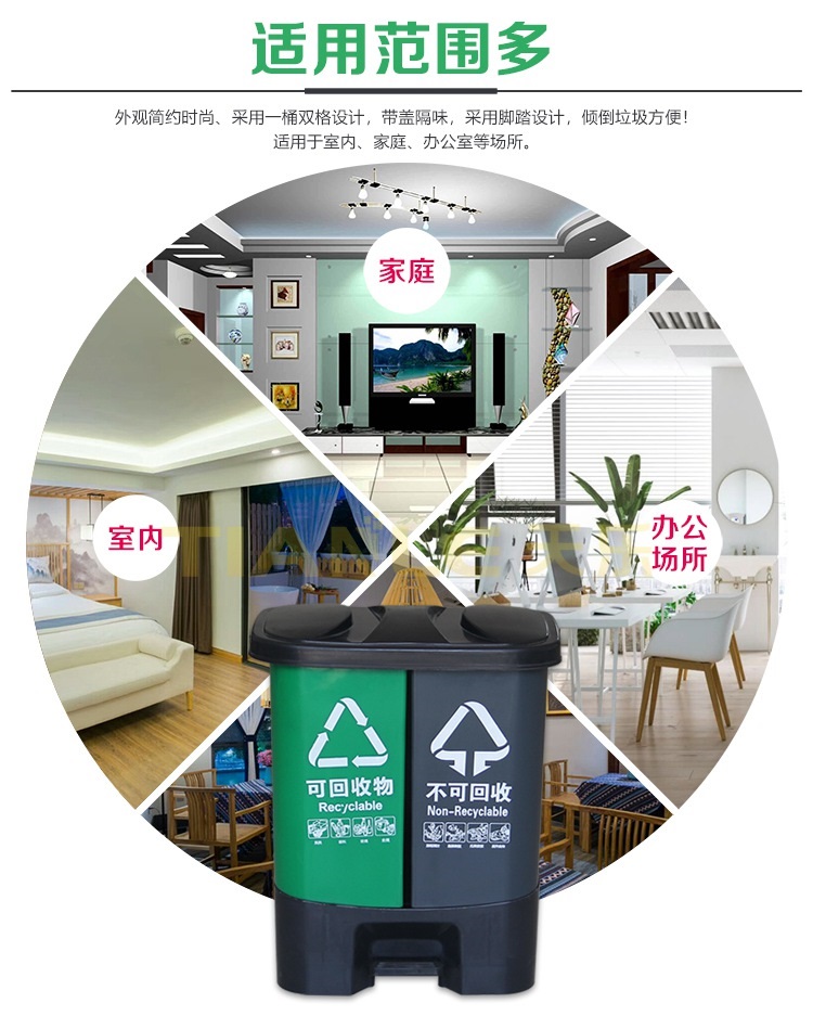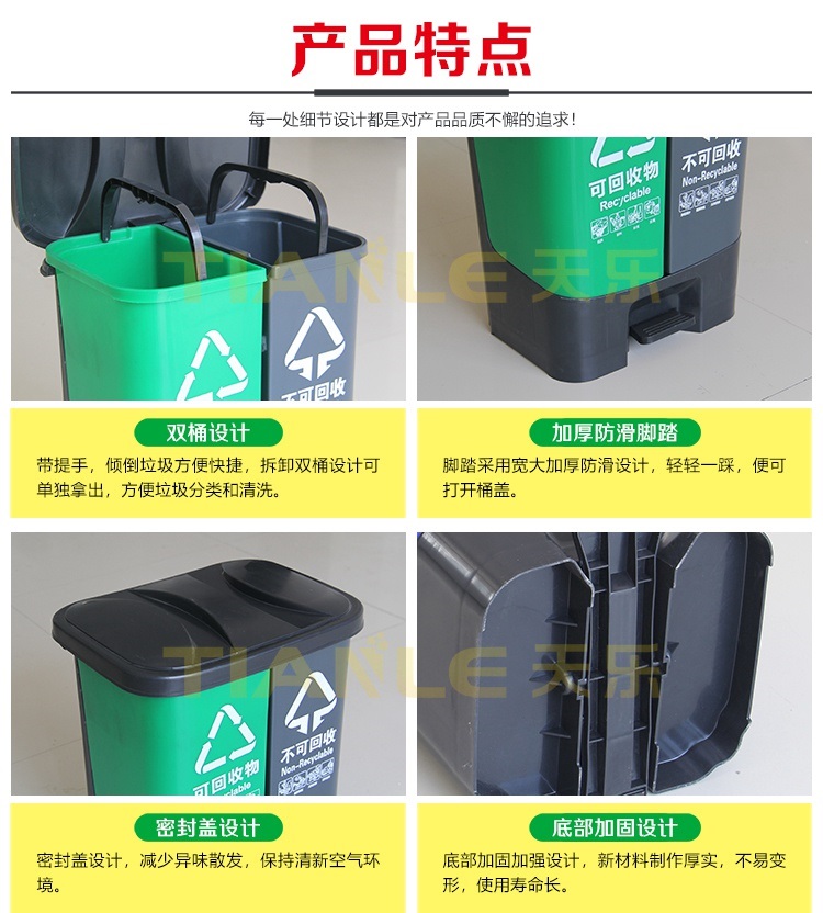 1、雙桶設計并帶提手,傾倒垃圾方便快捷,拆卸雙桶設計可單獨拿出,方便垃圾分類和清洗。