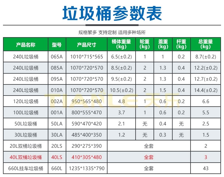 為此,山東天樂塑料科技有限公司生產的100L/120L/240L環衛、分類垃圾桶;40L/20L雙胞胎垃圾桶;智能垃圾桶可以更好助力城市鄉村垃圾分類,幫助解決地攤經濟帶來的城市環境衛生問題。